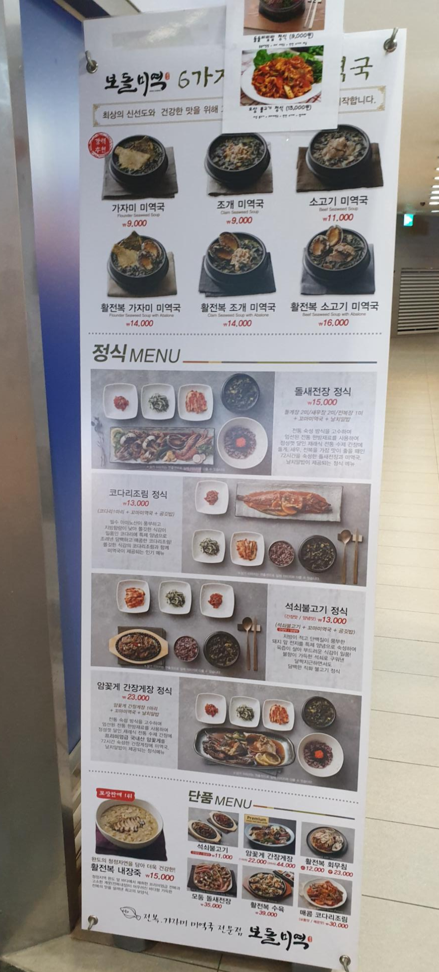 MBC 지하 1층에 있는 음식점 중 하나인 보돌미역. 지하 1층에 음식점이 꽤 있는데 여기 아니어도 먹을데가 있어서 그런지 여기에 있는 음식점들이 은근히 계속 바뀐다. 그 중에 송추마가골이나 카레집은 계속 자리를 지키고 있는 듯 싶지만 나머지는 다 얼마 안 된 듯 싶다. 그 중에 보돌미역 이라는 곳이 새로 생겨서 가봤다 ㅎㅎ 내가 먹은 메뉴는 활전복 소고기 미역국이었는데 좀 느끼했지만 꽤 맛있는 미역국이었다.
