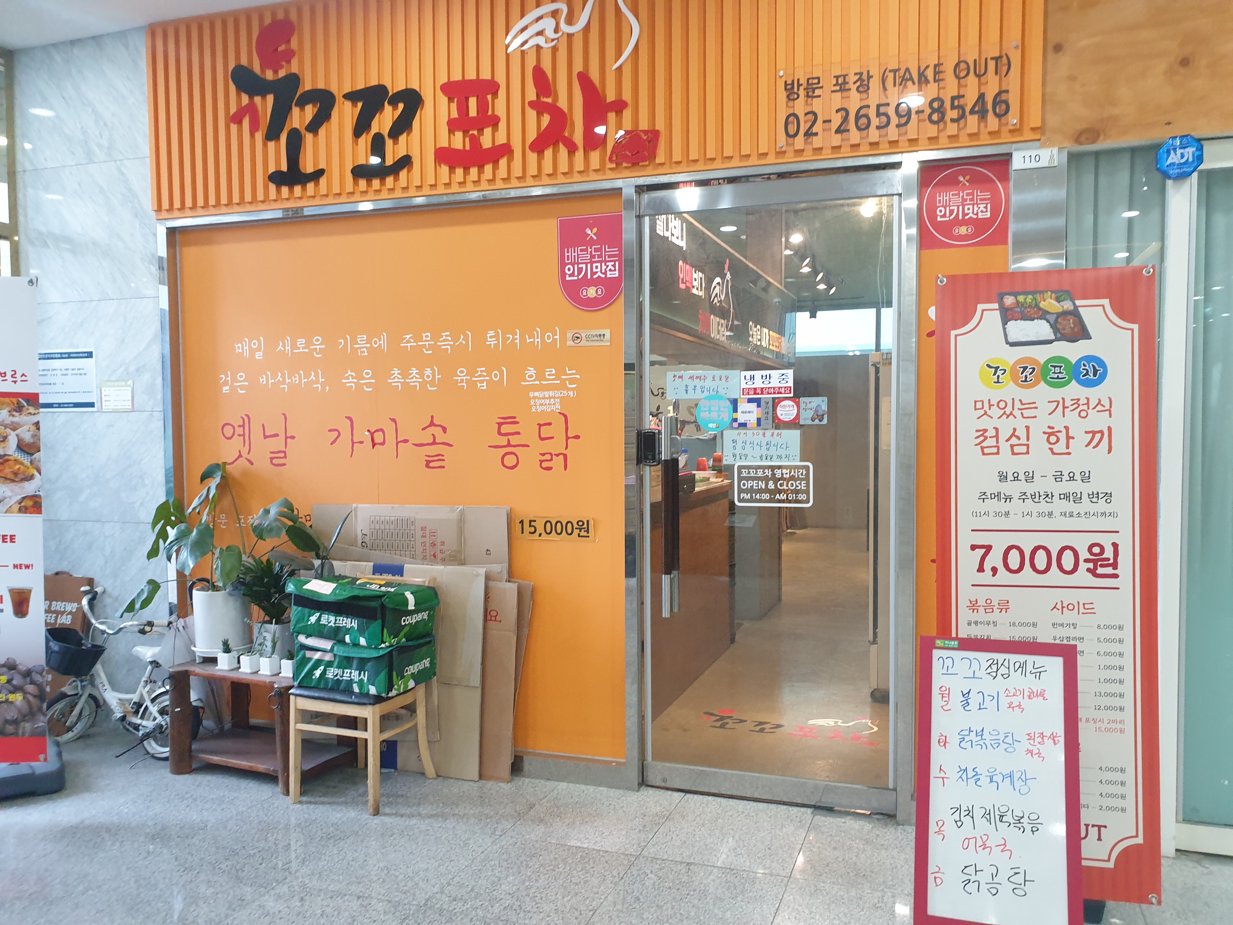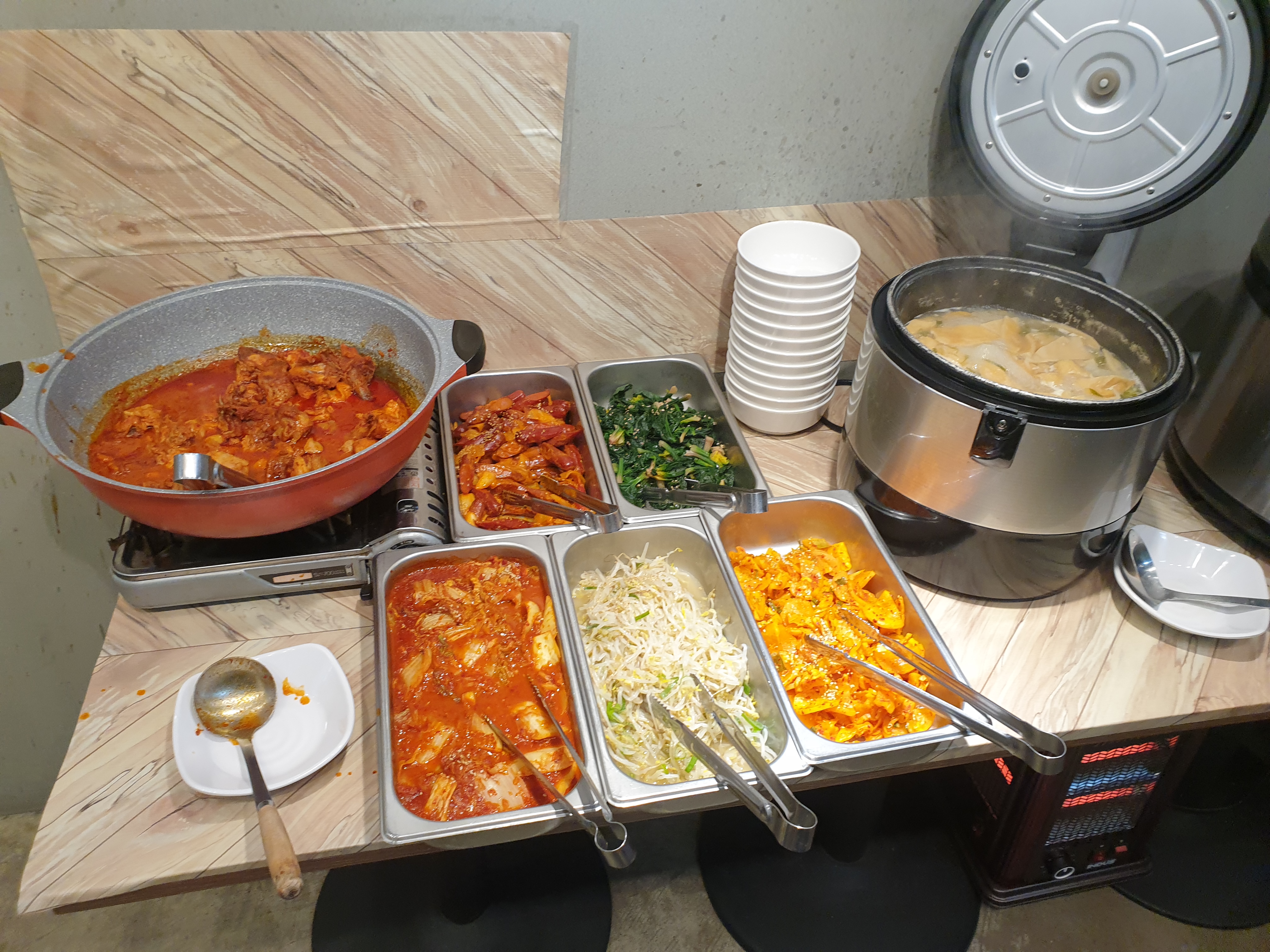 점심에 한식뷔페를 하는 포차 꼬꼬포차. 개인적으로 맘에 드는 곳이다. 회사와 가깝기도 하지만 좋은 쌀을 쓰는지 밥맛이 좋고 반찬들도 다 깔끔하고 맛있다. 가격은 7,000원! 일단 메뉴는 이렇게 정해져 있는데 언제 바뀔지는 모르겠다.