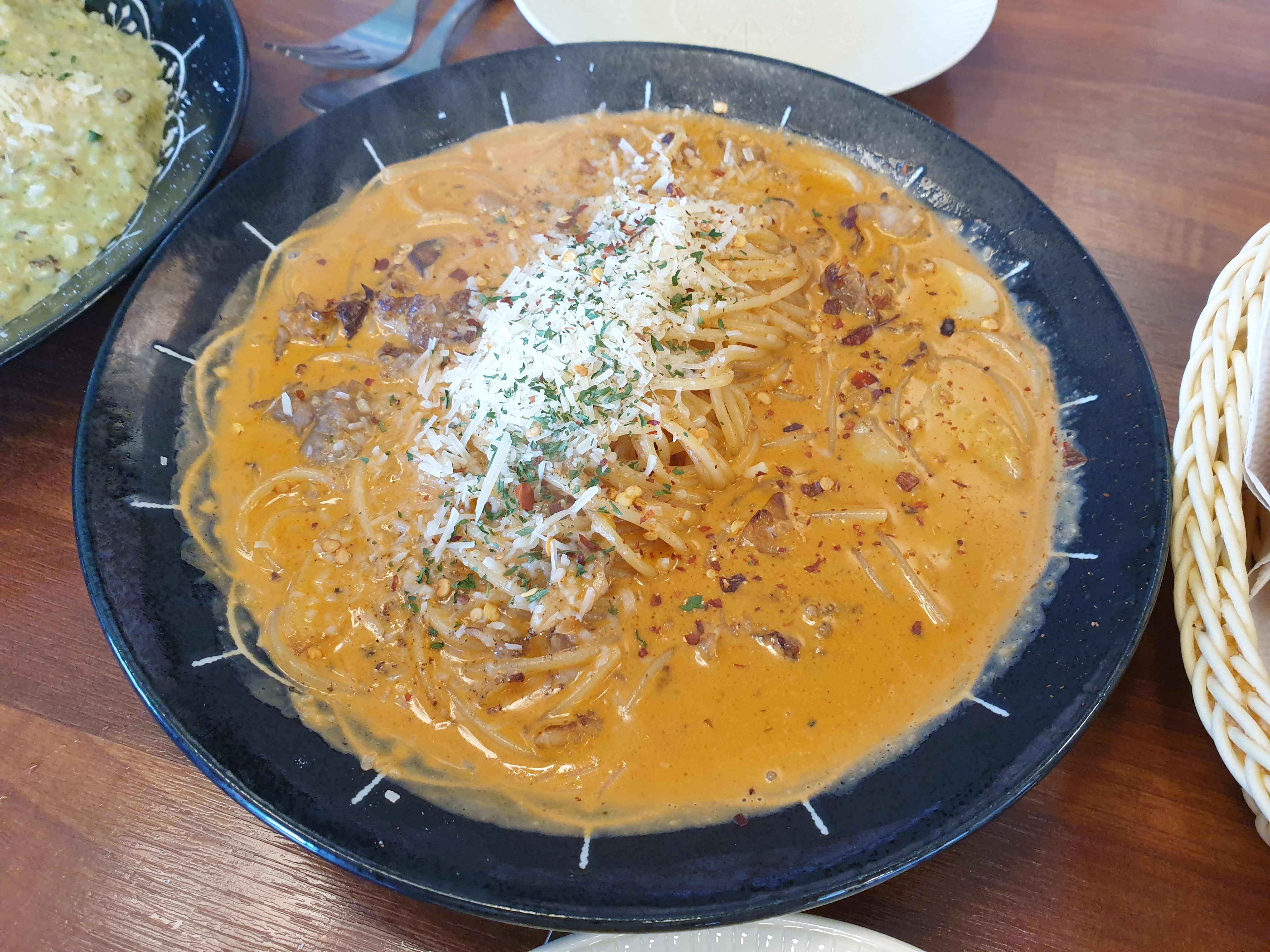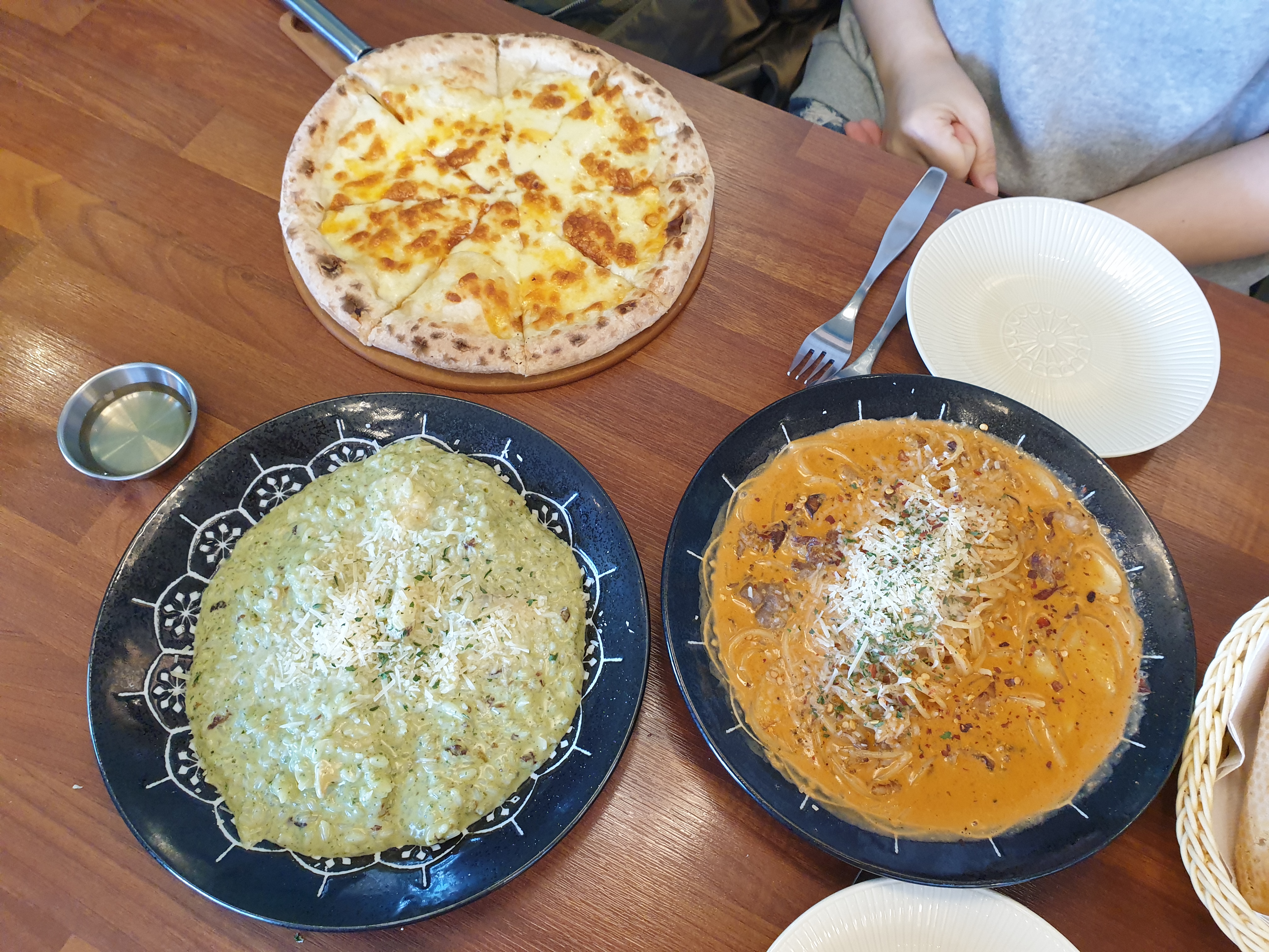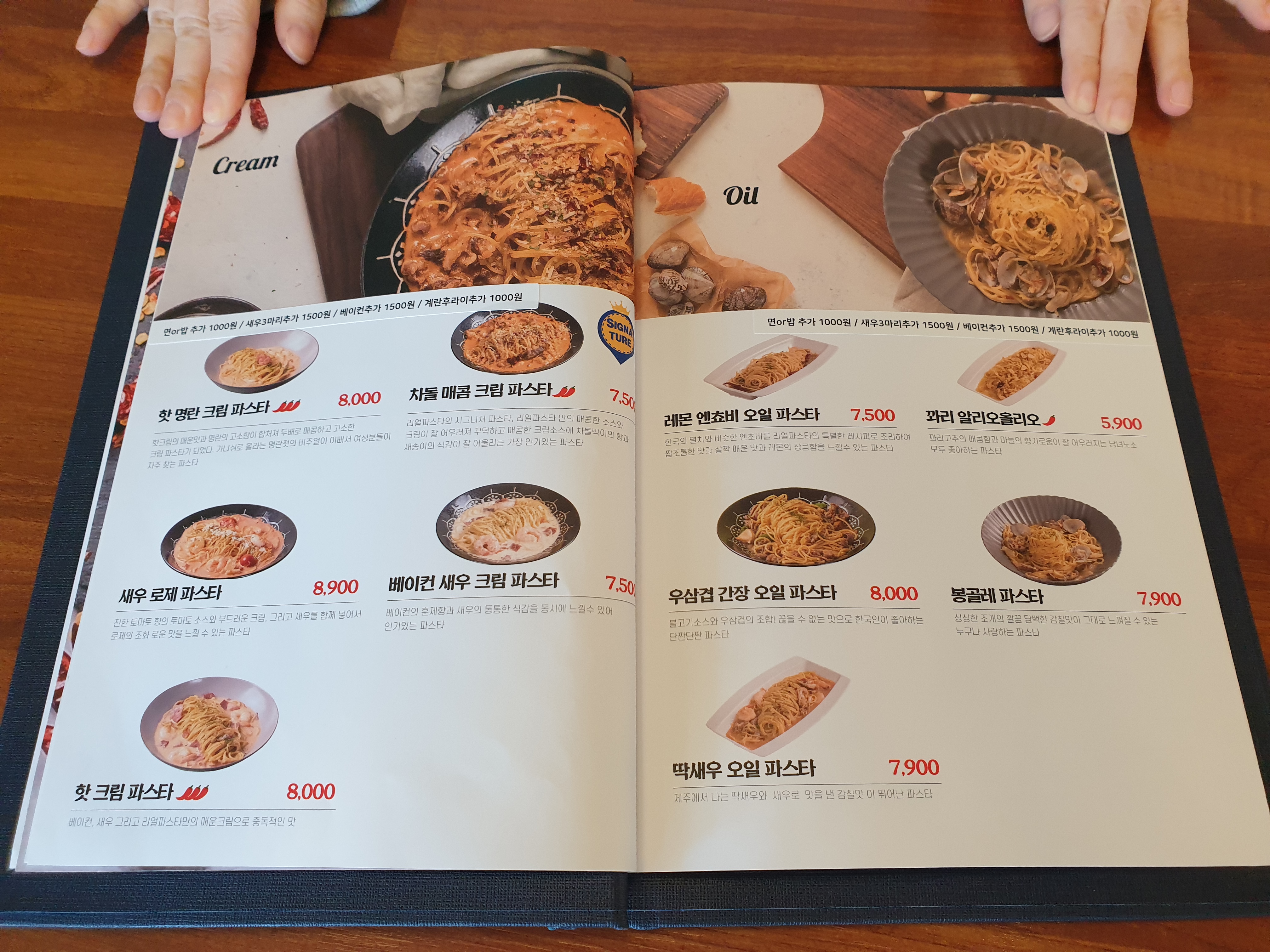 예전에 건대 근처에 살 때 대학생을 위한 맛있지만 저렴한 파스타집이 있어 자주 갔었는데 인천으로 이사오면서 멀어지고 대체할만한 가게를 찾지 못해 못 갔었다. 그러다 다방 겸 돈가스 집(?)이 없어지고 파스타집이 생겼다고 했을 땐 한 번 가야지 생각만 하고 코로나 때문에 가지 못 했다. 고기보다 우선순위가 떨어지는 파스타라 더더욱 가지 못 했다. 그러다 근처에 지나갈 일이 생겨 지나가다 입간판에 적혀 있는 가격을 봤더니?! 엄청 저렴했다. 그래서 시간 내서 갔고 기대 이상이었다! (피자랑 빵은 빼고 파스타만;)