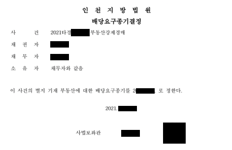 경매의 개시가 결정되고 며칠 이내에 배당요구종기가 결정된다. (내 경우는 3일 뒤에 결정되었다.) 그럼 이제 권리신고 및 배당요구 신청서를 제출할 수 있다. 나는 배당요구 안내서가 오는 걸 보고 제출하려고 현황조사명령이 떨어지고 조사원이 방문하는 걸 기다렸다가 안내서를 받아보고 배당요구 신청서를 제출했다.