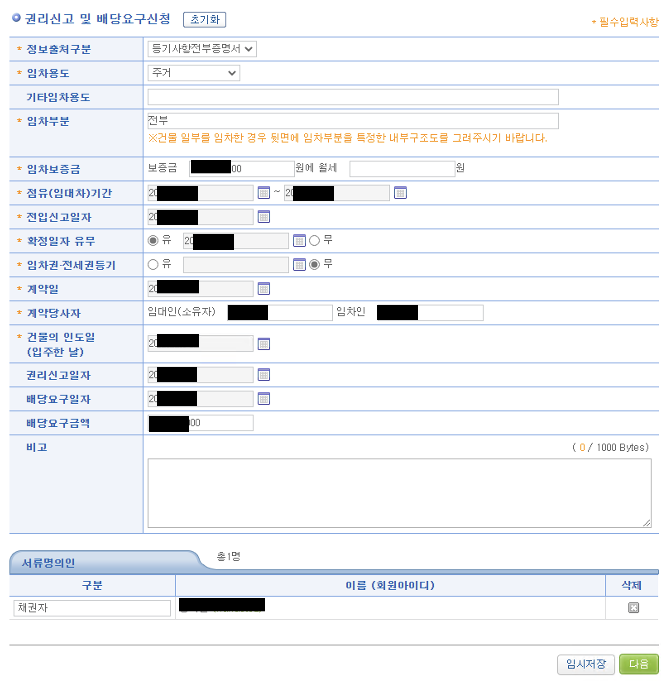 집주인 하나 임차인도 하나라 간단히 입력할 수 있었다. 슬슬 가족 주민번호 외에 다른 사람의 주민번호를 외우기 시작한다.