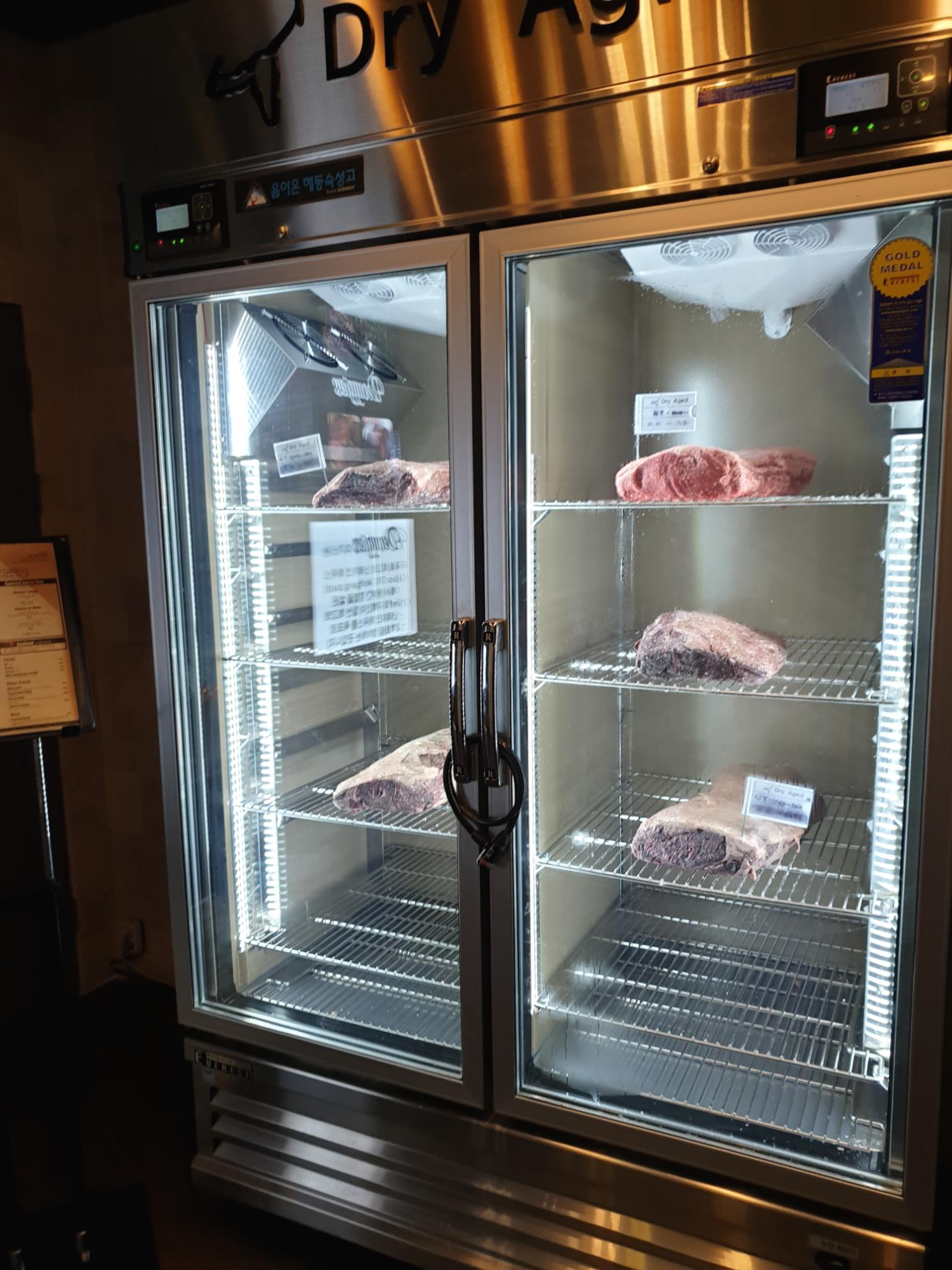 1층에는 화장실과 이렇게 현판, 에이징 중인 고기가 있고 계단에 올라가야 2층 식당이 나온다.