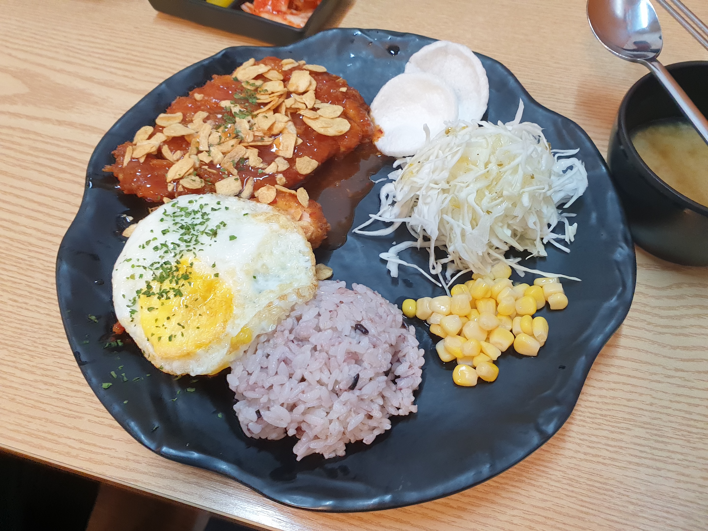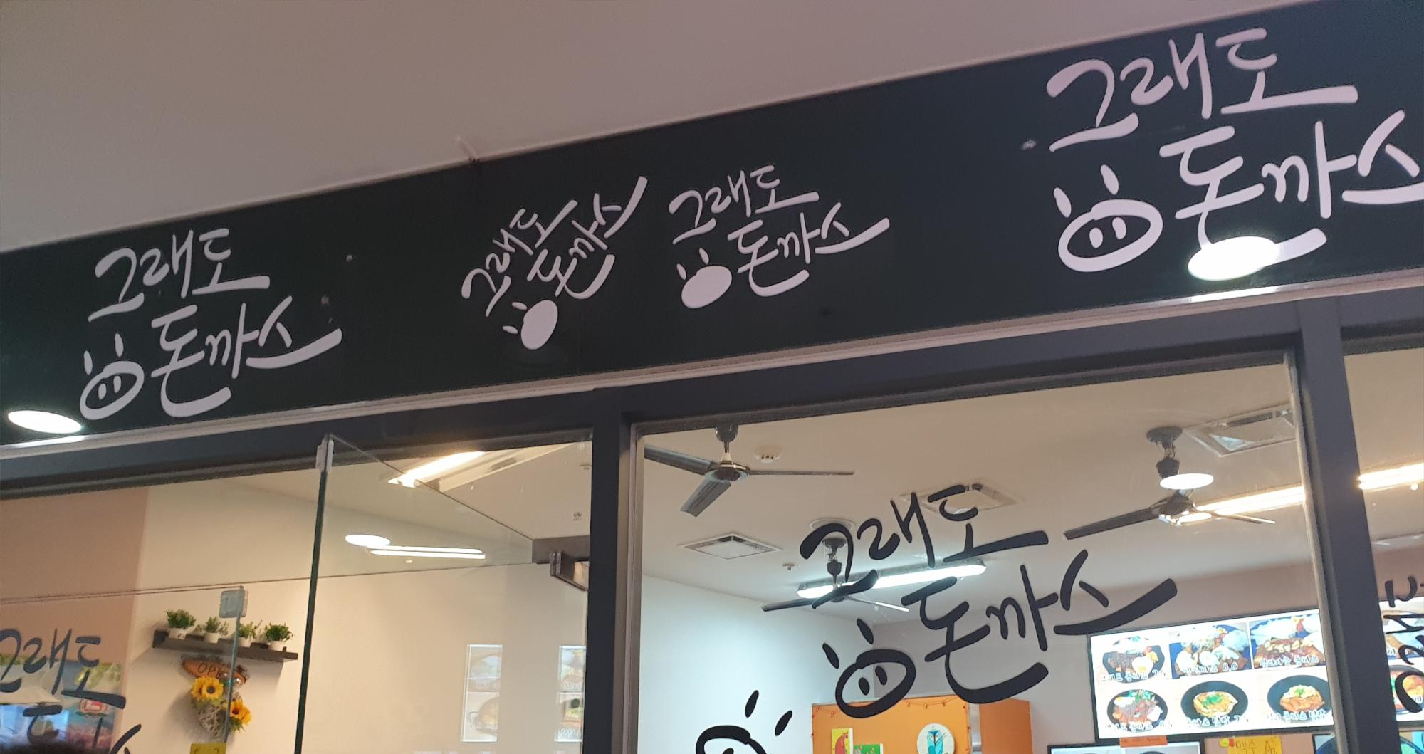 상암동 누리꿈스퀘어 지하 1층에 위치한 그래도 돈까스. 가게이름 그대로 돈까스를 전문적으로 하는 집이고 일반돈까스보다는 여러가지 맛을 가미한 칠리, 김치나베, 샐러드 등등의 돈까스가 주력인가보다.
